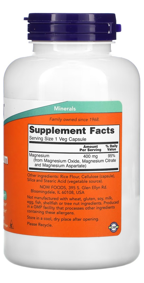 Magnésio Magnesium 400mg Now Foods 180 Veg Caps – No Brasil
