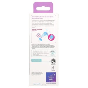 A válvula na base do frasco evita a formação de bolhas de ar e evita a formação de espuma do líquido. Isso cria um fluxo suave e evita que o bebê engula ar enquanto bebe. O resultado é menos cólicas e um bebê relaxado.