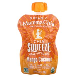 Mamma Chia Espremedor de Chia Orgânica Lanche Vitalidade Manga e Coco 8 Espremedores 99 g (35 oz) Cada – Mamma Chia Alimentos Petiscos e lanches Sachês de Fruta.