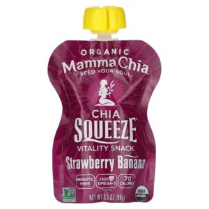 Mamma Chia Lanche Orgânico de Vitalidade com Toque de Chia Banana e Morango Pacote com 4 Unidades 99 g (35 oz) Cada – Mamma Chia Alimentos Petiscos e lanches Sachês de Fruta.
