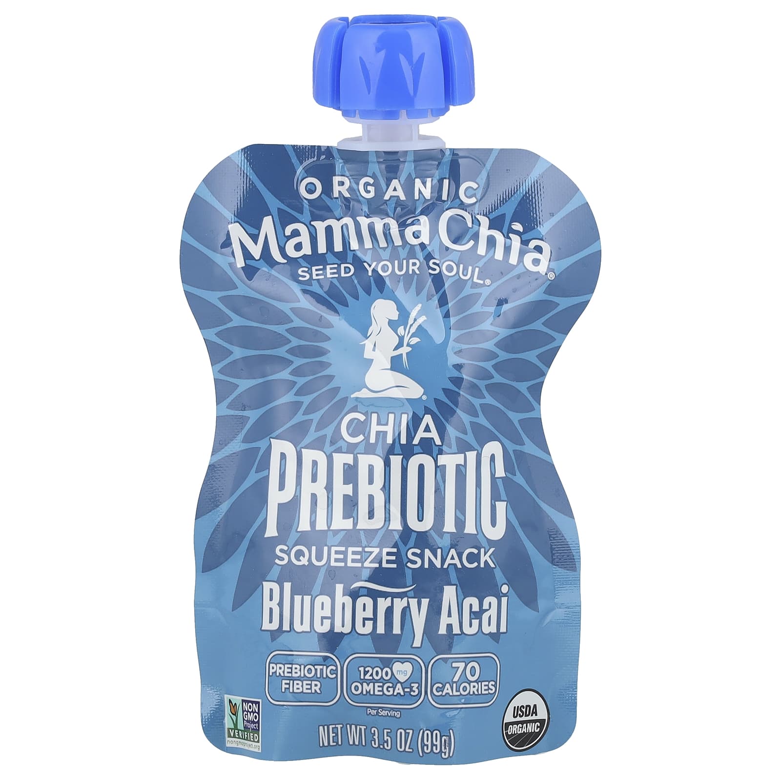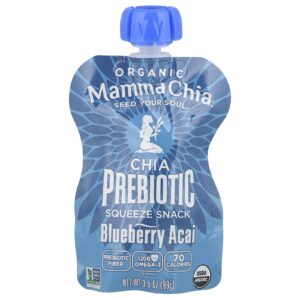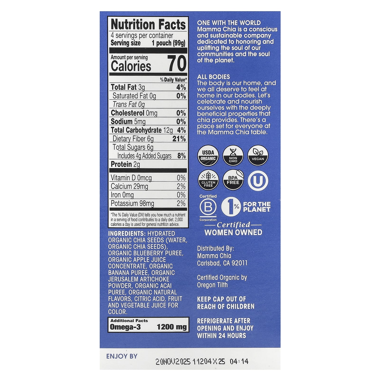 Mamma Chia Lanche Prebiótico de Chia Orgânica Açaí de Mirtilo 4 Suplementos 99 g (35 oz) Cada – Mamma Chia Alimentos Petiscos e lanches Sachês de Fruta.