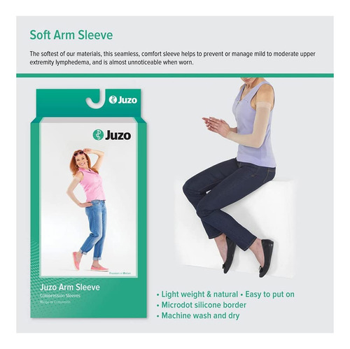 Juzo 20-30 mmHg, Soft, Sleeve, Max, Regular, Silicone, Beige, Size: II (2001MXCGRSB-II) – LIFESTYLE: Does your swollen arm prevent you from enjoying things like riding a bike or working in the garden? Juzos medical compression garments are specifically designed to help manage swelling from lymphatic issues. – DESIGN: This compression sleeve is designed for women, and has a full beaded silicone top band to help hold it in place. Theyre also seamless and available in regular, long, and max(for larger upper arms) sizes. – COMPRESSION: Lymphedema is a common issue throughout the compression therapy community, and Juzos compression armsleeves are here to help. Our garments manage lymphedema by comfortably keeping pressure on the affected area maintaining limb shape and to increase mobility. – MATERIALS: This compression armsleeve was made with Juzos exclusive FiberSoft technology, which wraps every elastic fiber with soft protective threads. This material makes it easier to put on and has increased durability for repeated use. Its the ultimate armsleeve for consistent comfort. – CARE: Machine wash warm water. Machine dry on low heat. Do not bleach. Do not iron. Do not dry clean.