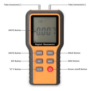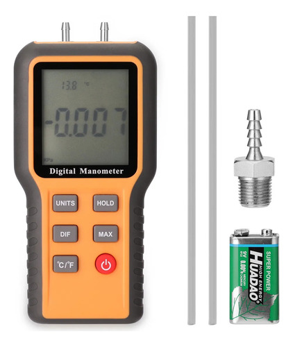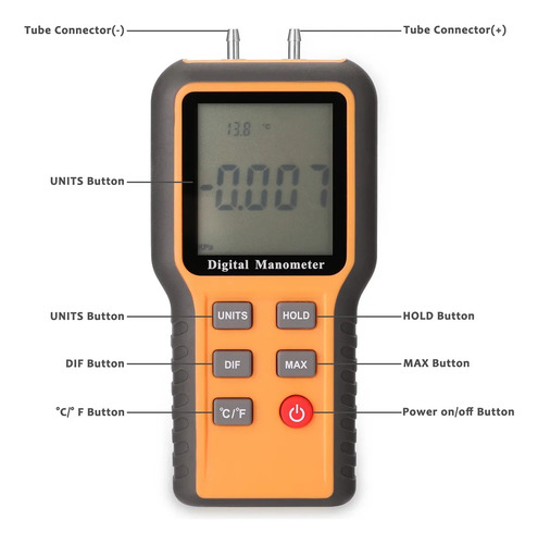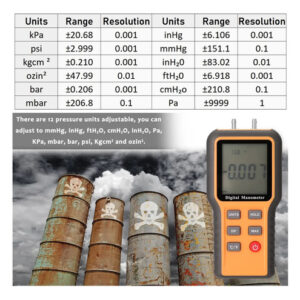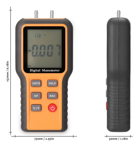 Este instrumento pode medir a pressão de ar do tubo único, ou pressão diferencial de dois tubos. Adota o sensor da pressão da qualidade, o ADC exato alto e o consumo MCU da baixa potência.