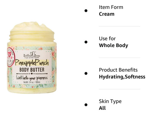 INFORMAÇÕES DO PRODUTO: – Produto: Bella & Bear Pineapple Body Butter, Hydrating Formula – V… – Marca: Bella and Bear – Modelo: CARACTERÍSTICAS: CONTEÚDO DO PACOTE: Se você precisar de mais informações ou estiver procurando por algum produto específico, faça sua consulta através desta publicação e um de nossos consultores lhe assistirá. Nossos produtos são novos e originais. Envio: de Miami, Flórida, Brasil. Se já realizou seu pedido, lembre-se que pode nos contatar através da mensageria da plataforma. Para acompanhar o envio, acesse os detalhes da compra. Nosso horário de atendimento é: de segunda a sábado, das 8:00 às 20:00 (Horário de Miami). CLUB ENVIOS participa do programa Compra Protegida do Personall.