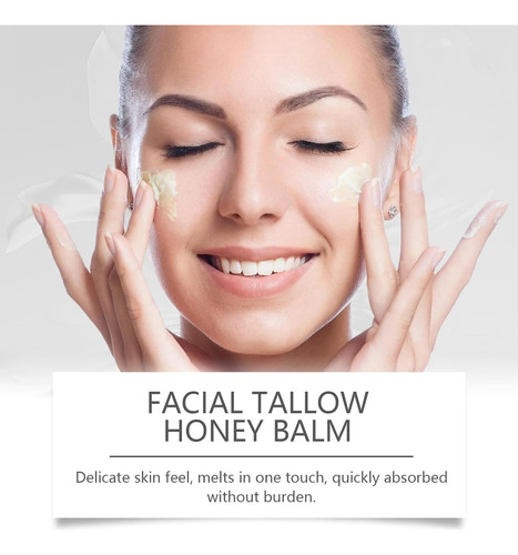 Bálsamo de sebo bovino batido e mel NUKYEJH, creme facial orgânico alimentado com capim (1 unidade) Bálsamo de