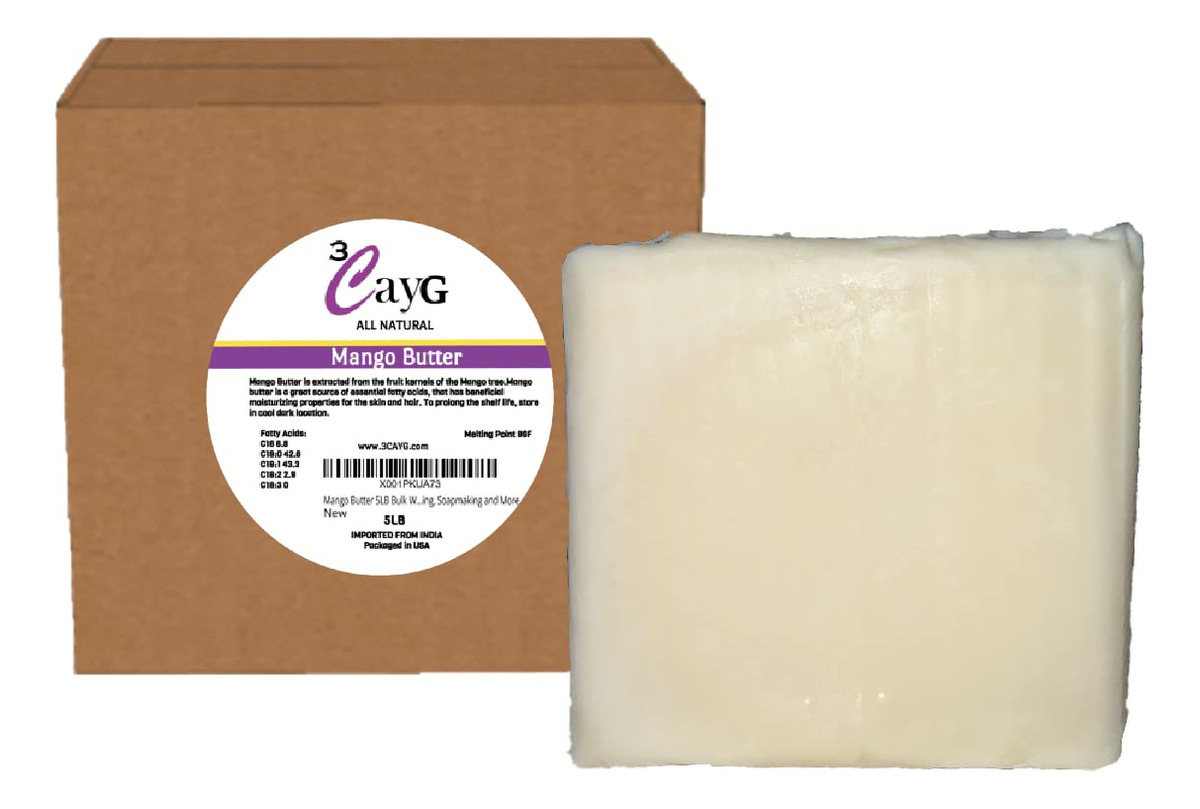 Bloco Pure Smooth de 5 LB. A maravilhosa manteiga de manga suaviza e acalma a pele seca e rachada, eczema e dermatite. A manteiga é semidura, mas derrete em contato com a pele. Também é ótima para uso como ingrediente cosmético para fabricação de sabonetes, loções, bombas de banho, condicionadores de cabelo e muito mais. – MANTEIGA NATURALMENTE REFINADA: manteiga corporal de manga 100% pura – Colhida na natureza – Naturalmente refinada – totalmente testada. – MANTEIGA CORPORAL: use para fazer sabonetes, loções, bombas de banho, manteigas corporais batidas DIY, condicionadores de cabelo e muito mais. A manteiga de manga pode ser usada de várias maneiras para suas necessidades pessoais. O perfil lipídico presente na manteiga de manga funciona como um emoliente para suavizar a pele e evitar que ela fique seca e com coceira. – INCRÍVEL LOÇÃO PARA A PELE: A manteiga de manga é eficaz na prevenção do ressecamento da pele. Também é um ingrediente ideal para bater manteiga orgânica, loções, bálsamos, cremes de massagem, pomadas e produtos para o cabelo. – BELEZA E CUIDADOS PESSOAIS: A natureza hidratante dessa manteiga também pode ser usada como ingrediente condicionador para produtos naturais para cabelo e pele. A manteiga de manga é uma ótima opção para hidratar praticamente qualquer tipo de pele. A manteiga de manga contém ácidos graxos essenciais que a tornam uma excelente opção para peles maduras. – Manteiga de manga suavizante para pele. Ótimo para manteiga corporal DIY, fabricação de sabonetes, loções, manteiga corporal batida, cuidados com o cabelo, produtos de banho e muito mais. Sementes de manga comercializadas de forma justa, provenientes de cooperativas sustentáveis na Índia.