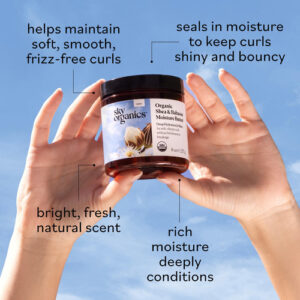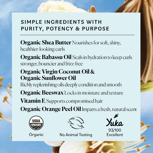 MANTEIGA HIDRATANTE PROFUNDAMENTE HIDRATANTE: Essa manteiga orgânica profundamente hidratante é uma maravilha multitarefa para cabelos cacheados que condiciona profundamente, retém a umidade, aumenta o brilho e doma o frizz. Apresenta um aroma fresco e natural.