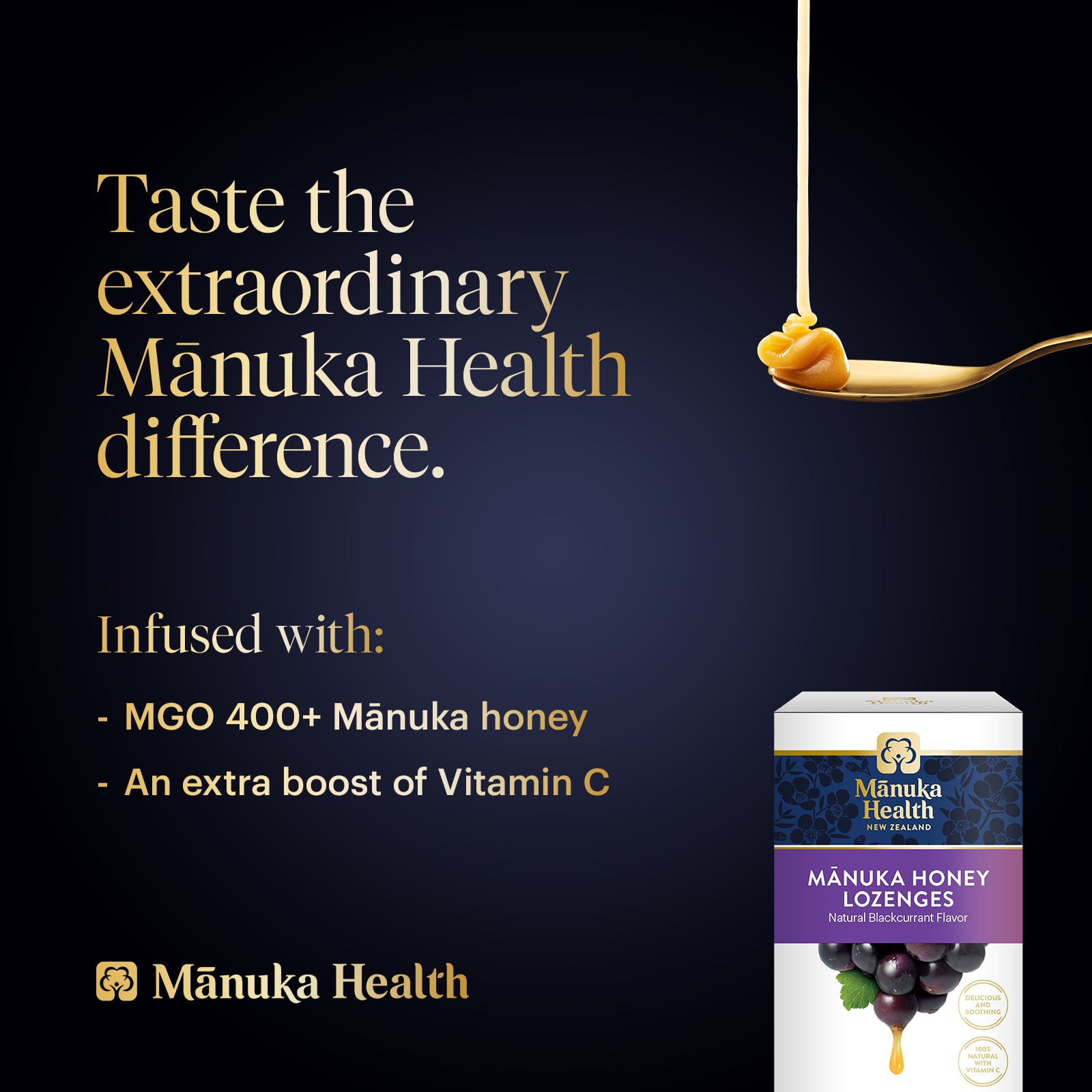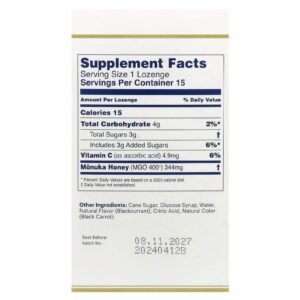 Estas deliciosas pastilhas ajudam a acalmar a garganta seca e irritada. Elas combinam a excelência do mel de Manuka premium da Nova Zelândia com o reforço da Vitamina C e o sabor fresco e frutado da groselha negra.