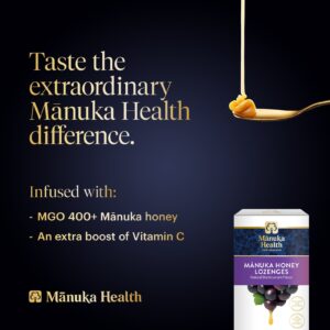 Manuka Health Pastilhas de Mel de Manuka Groselha Negra Natural MGO 400+ 15 Pastilhas – Manuka Health Cuidados Pessoais Armário do Banheiro Pastilhas para garganta inflamada e tosse Alimentos Mel e adoçantes Mel Mel de manuka.