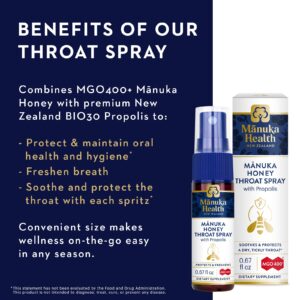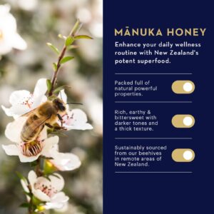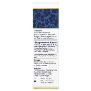 Acalma a garganta seca e com coceiras e refresca o hálito com Mel de Manuka MGO 400+ de alto qualidade, Própolis BIO30 da Nova Zelândia.