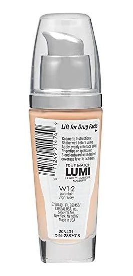 Finalmente, maquiagem que deixa a pele tão saudável que fica luminosa! A maquiagem luminosa saudável L'Oral Paris True Match Lumi combina 3 ingredientes poderosos que trabalham para melhorar sua tez quanto mais você os usa. A base líquida contém 40% de água pura para hidratação durante todo o dia, antioxidantes e vitaminas C e E para melhorar a clareza e o tom da pele. A tecnologia Liquid Light é incorporada na fórmula para um brilho luminoso instantâneo. A pele fica instantaneamente iluminada e, em 1 mês, a pele fica mais clara, saudável e luminosa. A Fundação Lumi com SPF 20 protege sua pele ao mesmo tempo que oferece cobertura média e acabamento luminoso. Disponível em 15 tons para combinar com o tom e o subtom da sua pele em tons quentes, neutros e frios. Acabamento: Acabamento luminoso. SPF: 19. Cobertura: Medium Coverage Foundation. Tipo de pele: Para todos os tipos de pele. Seguro para peles sensíveis. Disponíveis 12 tons realistas à pele em tons quentes, neutros e frios. A maquiagem líquida luminosa ilumina instantaneamente a pele em 1 mês, a pele fica mais clara e mais uniforme. Antioxidantes Vitamina C e E Agite bem antes de usar. Aplique diretamente no rosto com as pontas dos dedos ou com uma esponja. Misture em um movimento externo conforme necessário. Somente para uso externo. Evite o contato com os olhos. Interrompa o uso se aparecerem sinais de irritação ou erupção cutânea. Mantenha fora do alcance das crianças.