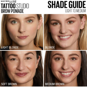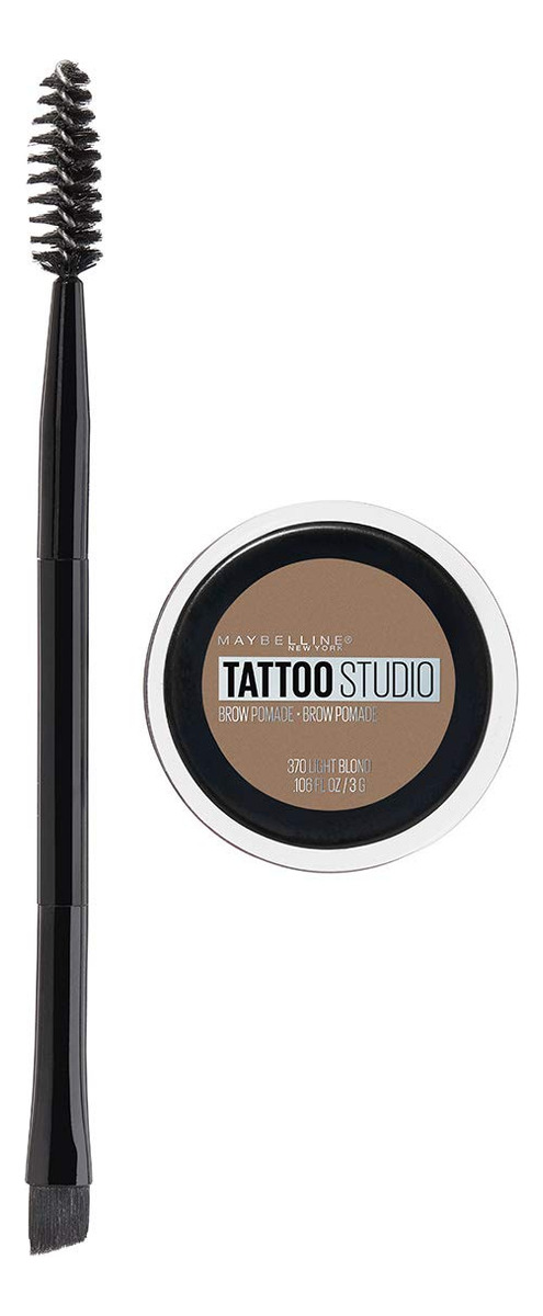 Pomada Maybelline New York Tattoostudio Brow de longa duração, montável, maquiagem para sobrancelhas, loira clara, 0,106 onças – A pomada de sobrancelhas TattooStudio esculpe e cria sua sobrancelha mais perfeita e apresenta uma fórmula montável e um acabamento fosco de longa duração – O aplicador de sobrancelhas de ponta dupla funciona para criar sobrancelhas cheias, esculpidas e com aparência natural em instantes – Esta pomada para sobrancelhas está disponível em variedade de tons neutros para obter sua aparência de sobrancelha mais natural até agora — Esta fórmula altamente pigmentada e à prova d'água não mancha e não se transfere para um uso infalível que dura 24 horas — remova facilmente esta pomada de sobrancelha impermeável e duradoura com o removedor de maquiagem para olhos Expert Eyes 100% isento de óleo