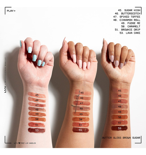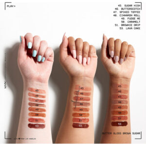 Apresentando nosso brilho de manteiga favorito dos fãs, agora mergulhado em açúcar mascavo! Nosso brilho OG, agora com 8 novos tons ricos e amanteigados, com o mesmo aroma doce icônico e brilho não pegajoso. Prontos para derreter nos lábios, esses tons são selecionados para embelezar uma ampla variedade de tons de pele marrom para uma combinação perfeita de nudez. De pêssegos quentes a marrons ricos e profundos, há um nude brilhante feito para você.