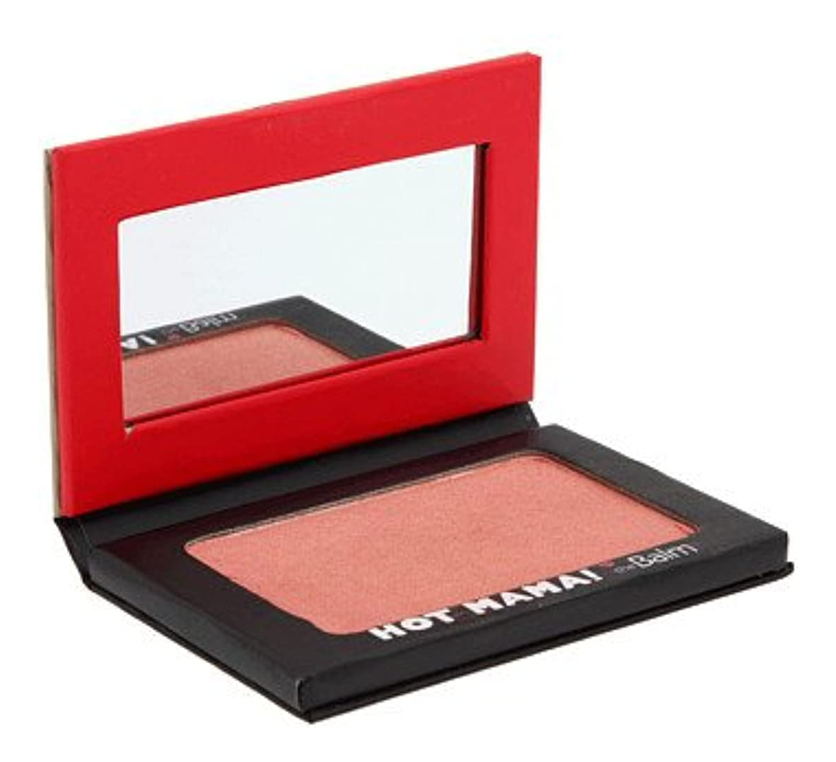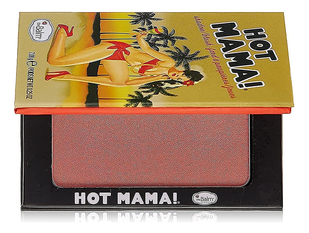 The Balm Hot Mama! – Hot mama é uma sombra sexy, um blush marcante e um iluminador sutil com um rosa pêssego – adiciona um toque de cor às bochechas e um toque de brilho às pálpebras – iluminando seus traços mais finos
