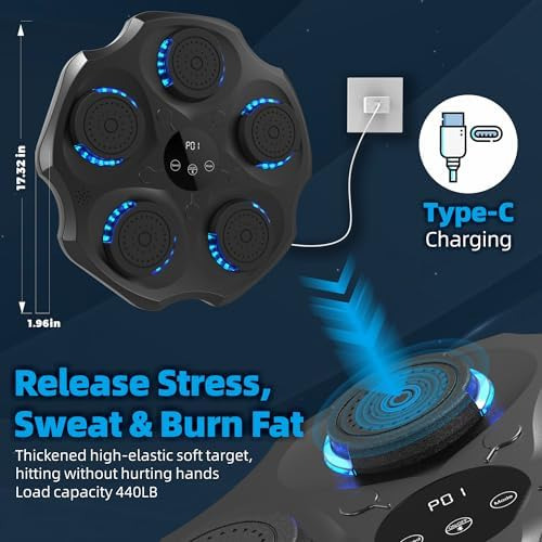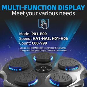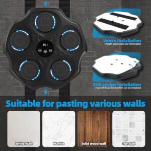 Máquina de boxe musical aprimorada com luvas de boxe, máquina de boxe Bluetooth montada na parede, empolgante treinamento musical de boxe doméstico para adultos e crianças – Atualização empolgante Experimente a mais recente máquina de boxe musical de 2024 com a tecnologia Beat Sync – acompanhe o ritmo enquanto você se move! Com 9 modos e 9 velocidades, esta máquina de boxe permite que você bata com liberdade. Perfeito para treinamento profissional e exercícios diários, é ideal para boxeadores, funcionários de escritório, crianças e muito mais. – Bluetooth e som surround O Bluetooth inteligente se conecta instantaneamente à máquina de treino musical. Escolha suas músicas favoritas e aproveite seu treino. O som estéreo e a iluminação fria criam uma experiência de boxe envolvente. Deixe a mistura de música e esportes alimentar sua paixão! – Display LED e diversão infinita Com um painel multifuncional fácil de usar, diga adeus às operações complicadas. A função inteligente de boxe musical conta com precisão cada soco, acompanhando seu progresso. Sua forte duração da bateria garante que você possa tocar livremente e desafiar seus limites! – Instalação simples A máquina de boxe musical montada na parede não requer perfuração, oferecendo 2 métodos de instalação. O Vaelcro ajustável serve para todos os membros da família, e o adesivo forte pode suportar até 440 libras. Ele vem com luvas de boxe e um suporte de telefone para um treino agradável! – Serviço pós-venda de alto nível. Cada máquina de boxe de música doméstica passa por testes rigorosos para garantir a qualidade. Se você tiver algum problema durante a instalação ou uso, entre em contato conosco para obter uma solução satisfatória!