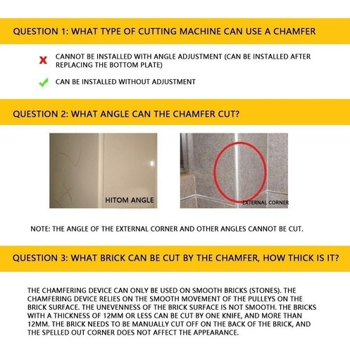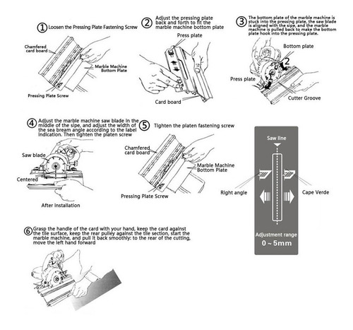 vitrificados. A lâmina de serra pode ser ajustada na faixa de 0-5mm, ajustá-la corretamente e, em seguida, corrigi-la e cortar a borda do ângulo reto ou a borda do canto da begônia.