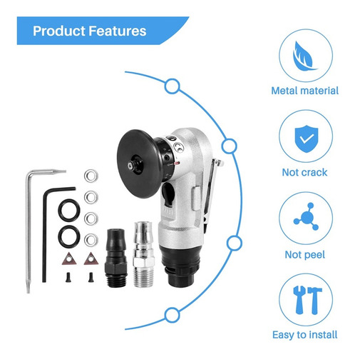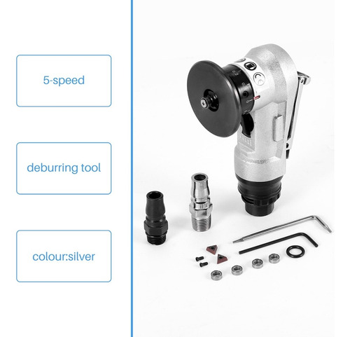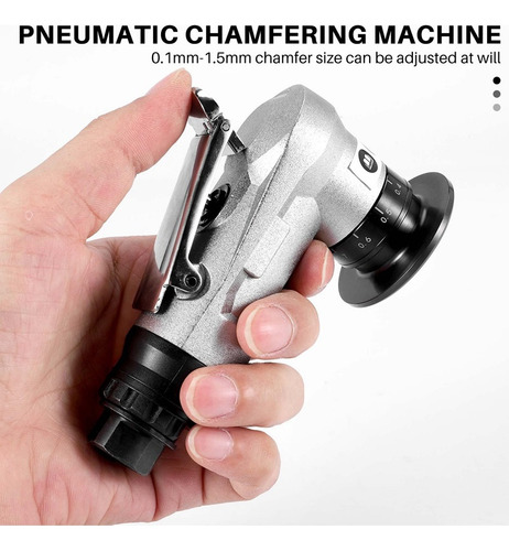 DESIGN INTELIGENTE Botão espessado de ajuste da válvula de ar de 5 velocidades, ajuste livremente a velocidade da engrenagem necessária; o tamanho do chanfro de 0,1 mm a 1,5 mm pode ser ajustado à vontade; Porta de escape rotativa de 360 graus, boa dissipação de calor, alta eficiência de trabalho; interruptor de segurança É usado para evitar toques acidentais e proteger o usuário segurança em todos os momentos.