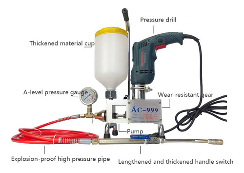 Máquina de lechada de epoxi Bomba de inyección de epoxi de 1100 W/Máquina de lechada de agua impermeable de espuma de poliuretano |