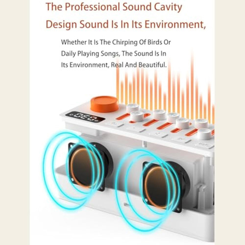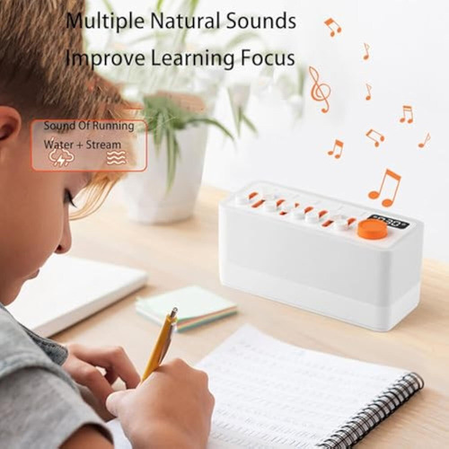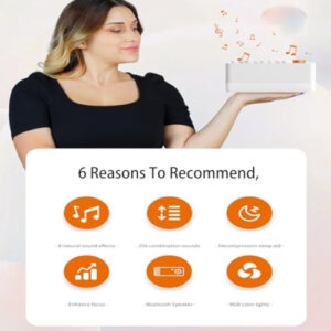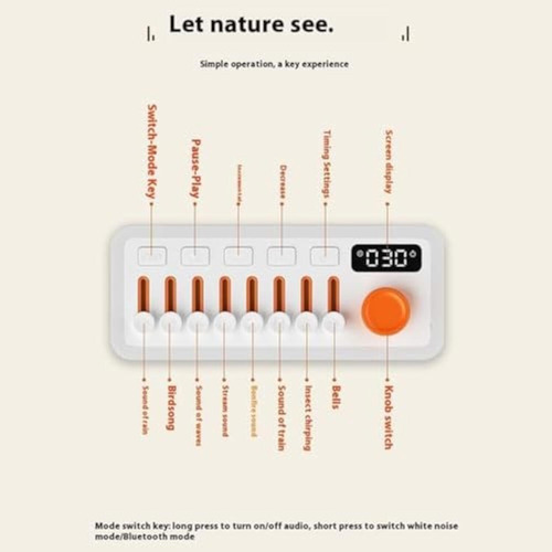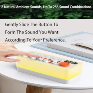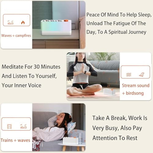 – 8 sons naturais: chuva, canto de pássaros, ondas do mar e muito mais, com 256 combinações personalizáveis.