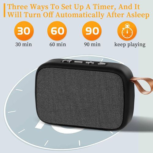 Suporta Configuração do temporizador Suporta configuração do temporizador de 30 min/60 min/90 minutos, a máquina de som para dormir será desligada automaticamente após o sono. Não é necessário sair da cama para desligá-la. Tenha um bom sonho!