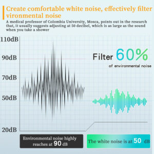 26 sons suaves Construído com 26 sons suaves, incluindo som de ventilador, ruído branco, som de ondas, som de chuva, canção de ninar, etc., que ajudam a bloquear ruídos ambientais perturbadores e permitir que você e o bebê adormeçam mais e mais profundamente.