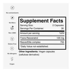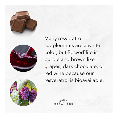 • ResverElite é um suplemento de resveratrol altamente biodisponível produzido pela Mara Labs que contém 120 mg de Trans-Resveratrol natural e nossa molécula transportadora patenteada.