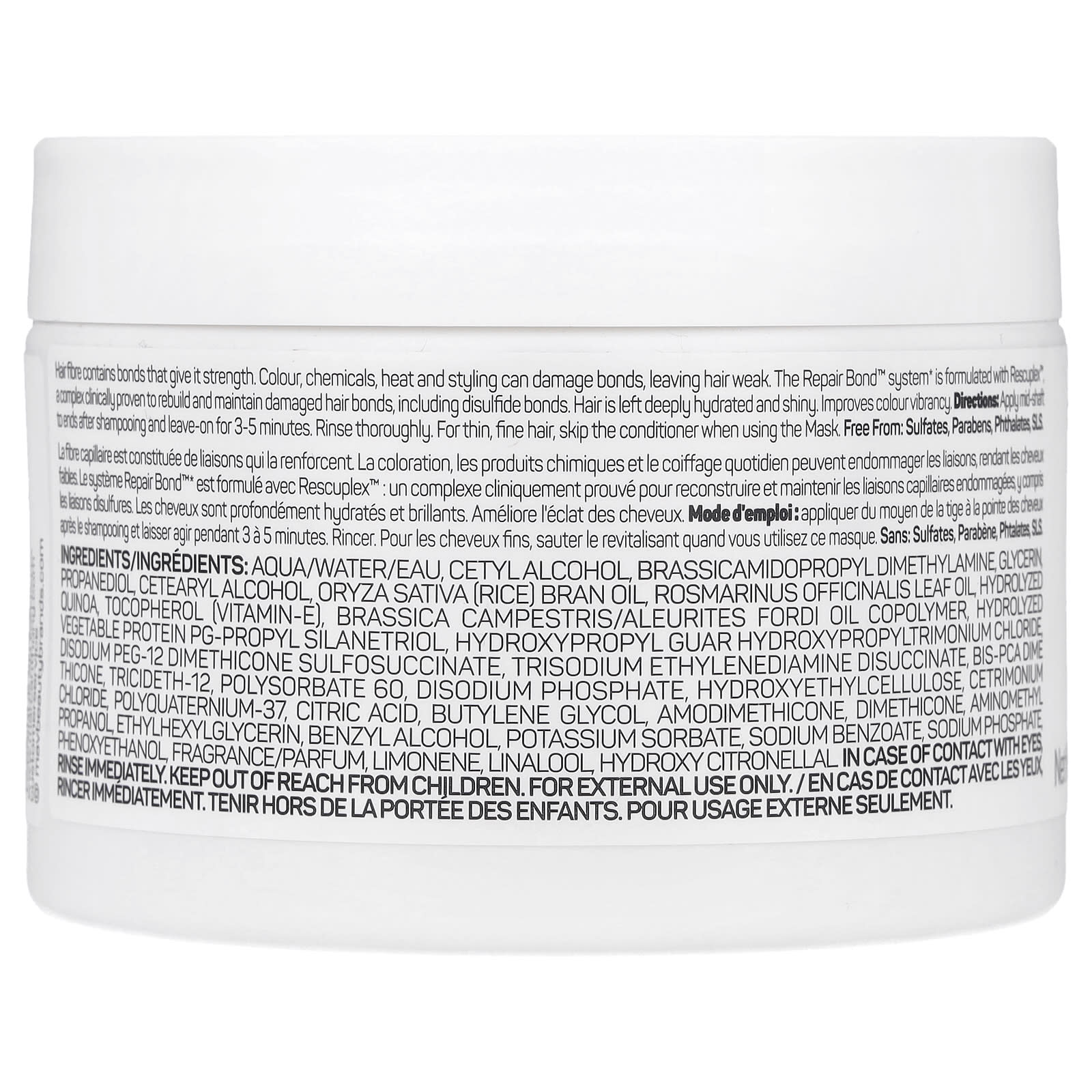 A fibra capilar contém ligações que lhe conferem força. Cor, produtos químicos, calor e fazer penteados podem danificar as ligações, deixando o cabelo fraco. O sistema Repair Bond™ é formulado com Rescuplex™, um complexo clinicamente comprovado para reconstruir e manter as ligações capilares danificadas, incluindo as ligações dissulfeto. Os cabelos ficam profundamente hidratados e brilhantes. Melhora a vitalidade da cor.