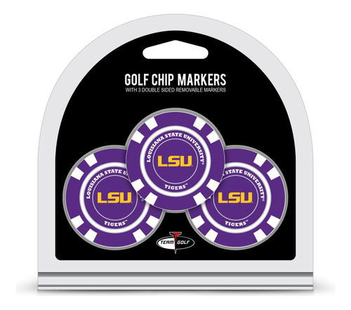 Team Golf NCAA LSU Tigers 3 Pack Golf Chip Ball Markers, Poker Chip Size with Pop Out Smaller Double-Sided Enamel Markers – Product dimensions (inches): 4 x 0.5 x 5; Weight: 0.14 lbs – Features include: Team logo on back of chip & Strong magnet to hold marker – Set includes: 3 colored golf chip ball markers & 3 double sided enamel color fill magnetic markers – Perfect for showing off your team spirit while on the green – Great gift for the holidays, Fathers Day, and special events!
