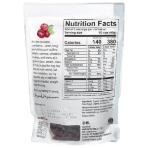 Mariani Cranberries Secas Orgânicas 113 g (4 oz) – Mariani Dried Fruit Alimentos Petiscos e lanches Frutas e Legumes Secos Arandos Snacks de frutas e vegetais.