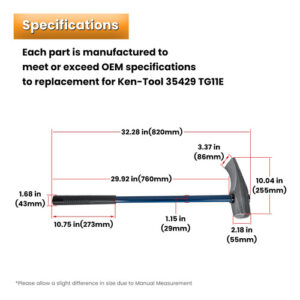 Martelo de nível profissional Perfeitamente usado para motocicletas, automóveis de passageiros, caminhões, ônibus, quadriciclos, UTV, tratores agrícolas, pneus de aeronaves, etc. Cada peça é fabricada para atender ou exceder as especificações OEM para substituir o Ken-Tool 35429 TG11E. – Martelo de nível profissional Perfeitamente usado para motocicletas, automóveis de passageiros, caminhões, ônibus, quadriciclos, UTV, tratores agrícolas, pneus de aeronaves, etc. Cada peça é fabricada para atender ou exceder o OEM especificações para substituir o Ken-Tool 35429 TG11E. – Design perfeito Esta exclusiva cunha quebradora de contas com bico de pato é usada de forma fácil, rápida e eficiente separando pneus dos aros das rodas, mesmo nas pérolas mais difíceis. Aumente a conicidade na extremidade da alça e aumente a área de contato entre a alça e a cabeça do martelo para manter o martelo firmemente no lugar e evitar que ele caia da extremidade da alça. – Trabalho mais fácil Oferece giro eficaz e resistência extra, reduz a fadiga e a tensão no cotovelo e no pulso e usa vantagens mecânicas para afastar o cordão do aro. Tecnologia avançada de classe mundial cuidadosamente elaborada para atender às suas necessidades e trabalhos mais difíceis em casa, no campo ou em qualquer situação. – Qualidade superior Construção avançada em aço de alto carbono endurecido e temperado de grau premium, resistência e durabilidade superiores, anti-impacto, anticorrosão e antiferrugem para confiabilidade duradoura. A alça de nylon superresistente reforçada com fibra de vidro com capa ergonômica de borracha antiderrapante absorve as vibrações e reduz a fadiga. – Garantia de 100% de satisfação Se você não estiver 100% satisfeito com nossos itens, basta devolvê-la para reembolso em 30 dias. Garantia de suporte de 12 meses. O serviço profissional e sincero permite que você não corra riscos ao comprar no e-Cowlboy!