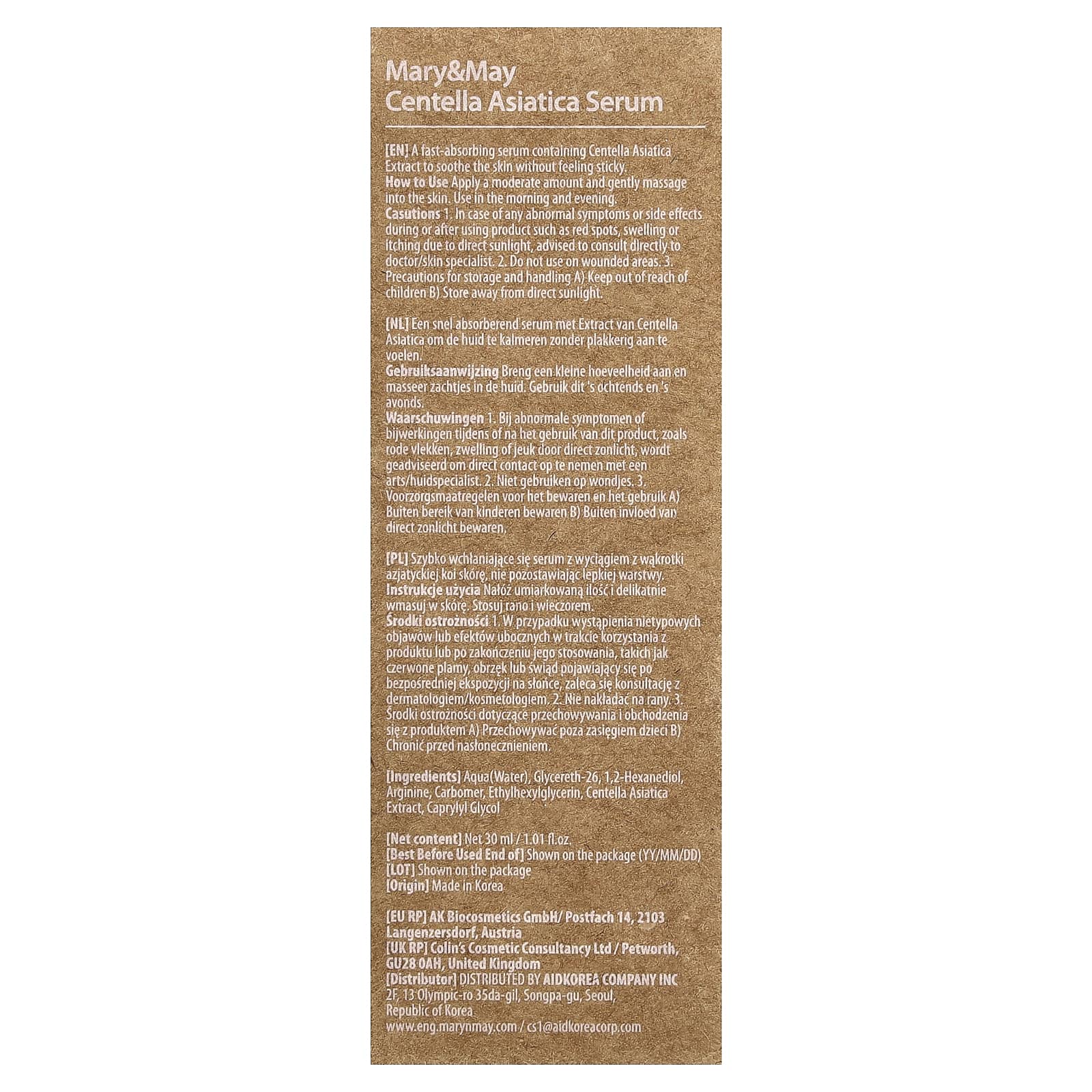 Mary & May Sérum Centella asiatica Sem Fragrância 30 ml (101 fl oz) – Mary & May Beleza Tratamentos e Séruns Séruns Faciais Beleza por Ingrediente Cuidado para a pele com Centella.