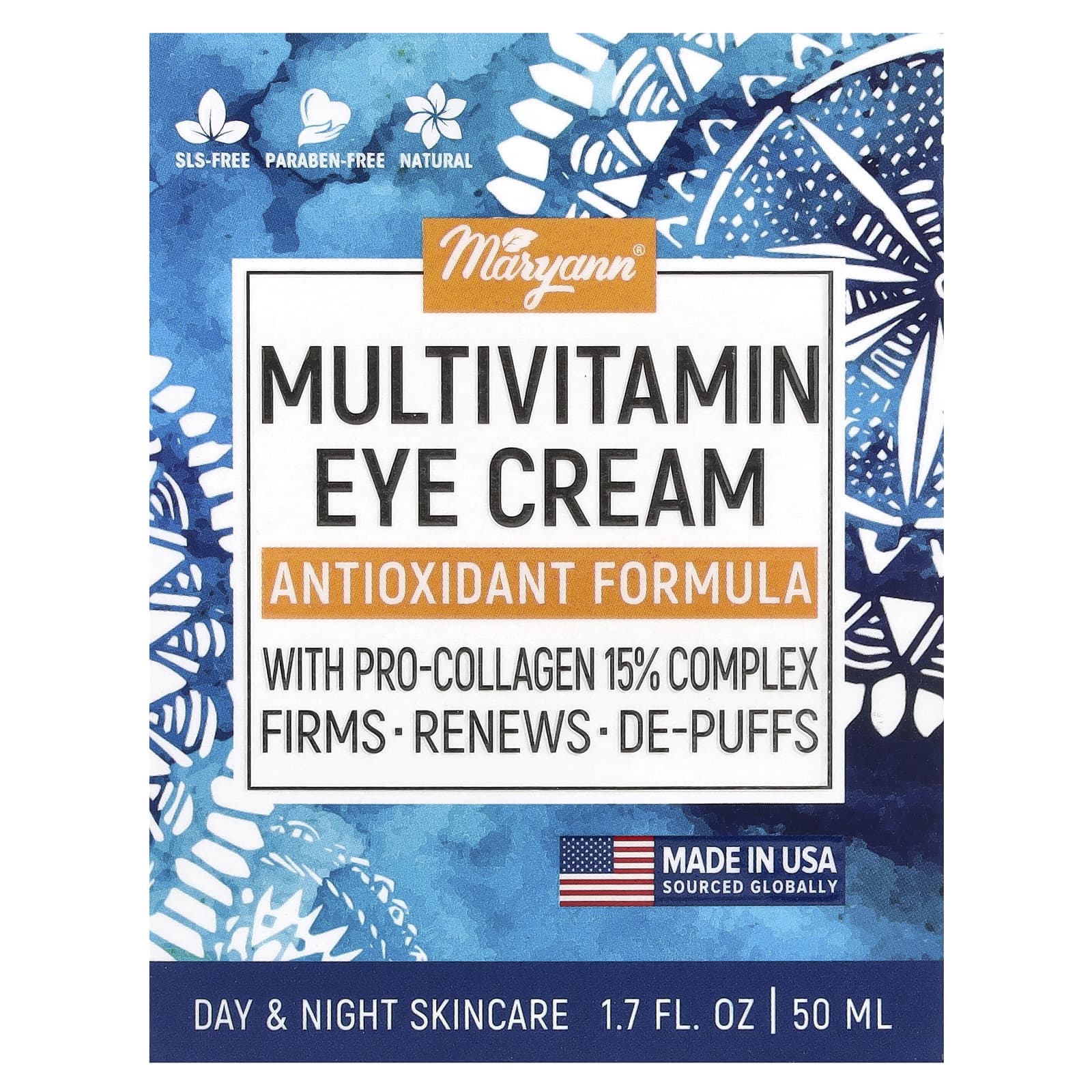 MaryAnn Organics Creme Multivitamínico para a Área dos Olhos Fórmula Antioxidante 50 ml (17 fl oz) – MaryAnn Organics Beleza Hidratantes Faciais e Cremes Cremes para os olhos.