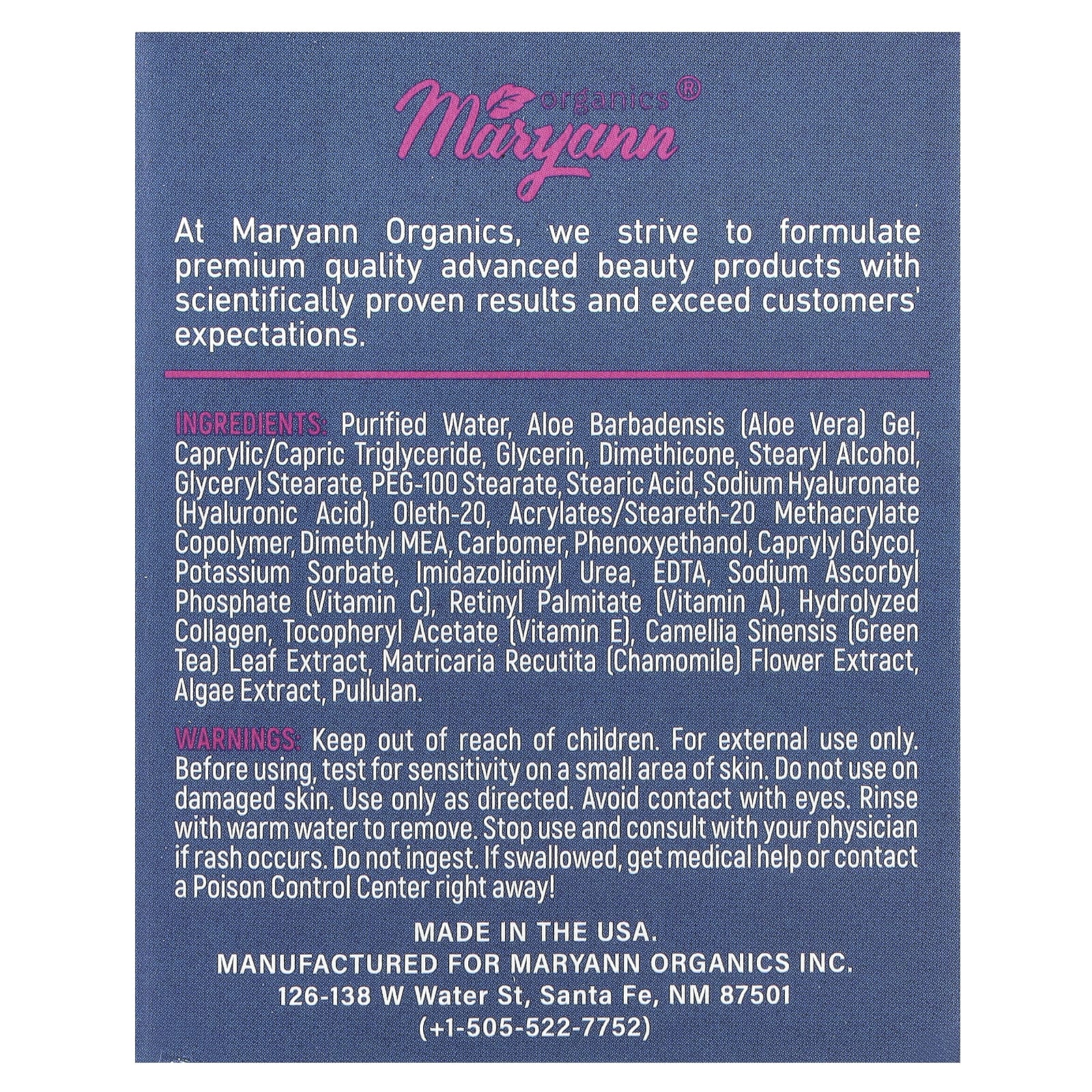 Na Maryann Organics, nos esforçamos para formular produtos de beleza avançados e de qualidade premium com resultados cientificamente comprovados e que superem as expectativas dos clientes.