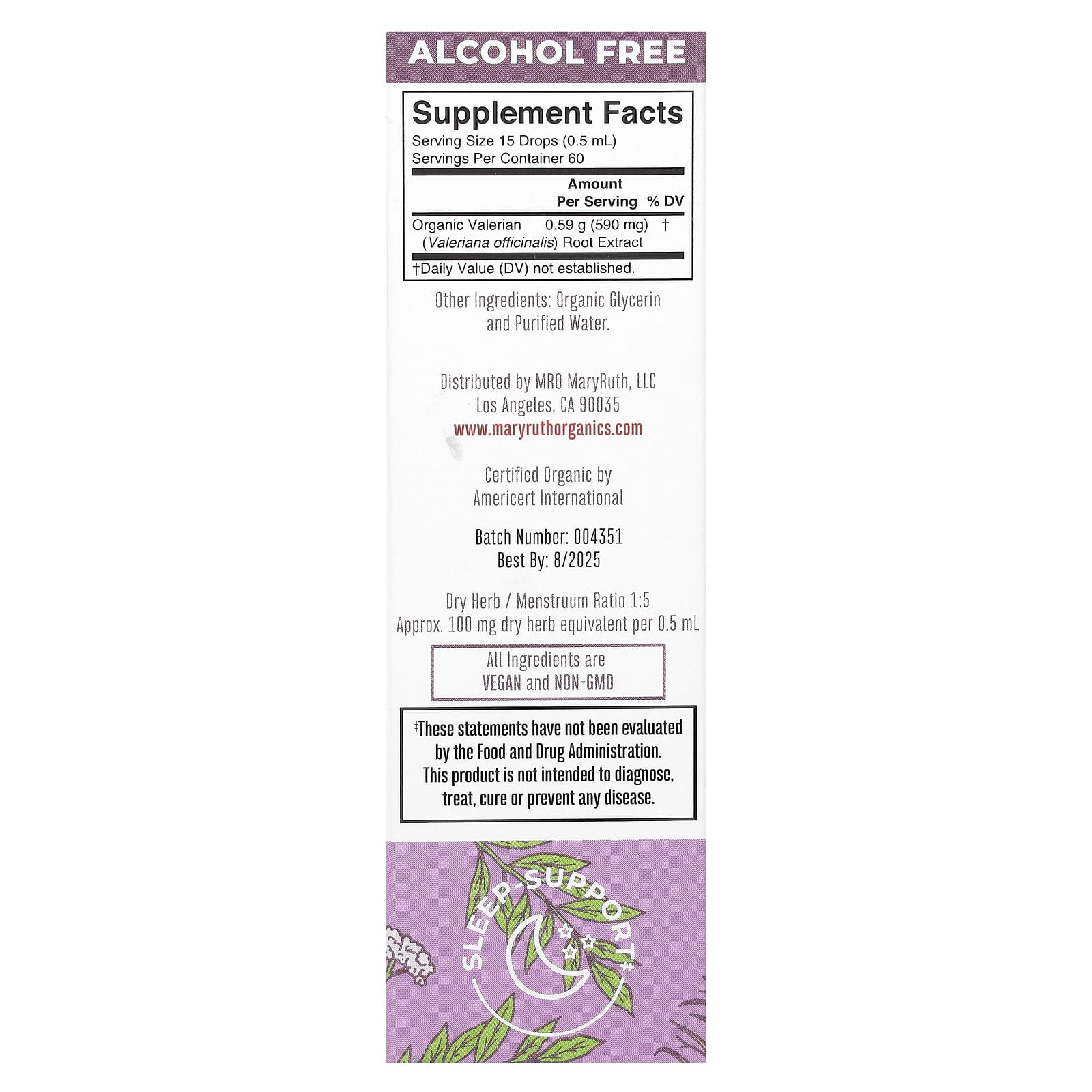 MaryRuths Extrato Líquido da Raiz de Valeriana Orgânica Sem Álcool 30 ml (1 fl oz) – MaryRuth’s Suplementos Ervas Valeriana.
