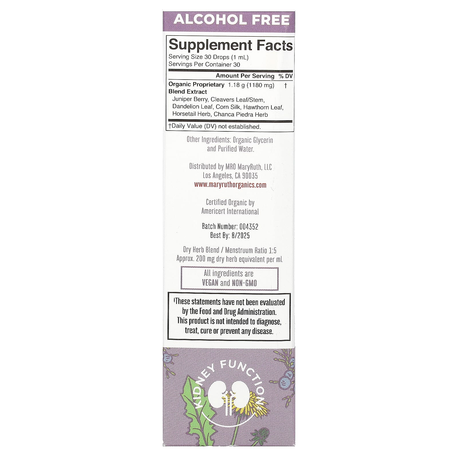 MaryRuths Extrato Líquido Orgânico para Rins e Bexiga Sem Álcool 30 ml (1 fl oz) – MaryRuth’s Suplementos Ervas Fórmulas de Ervas Saúde Bexiga Fórmulas Renais.