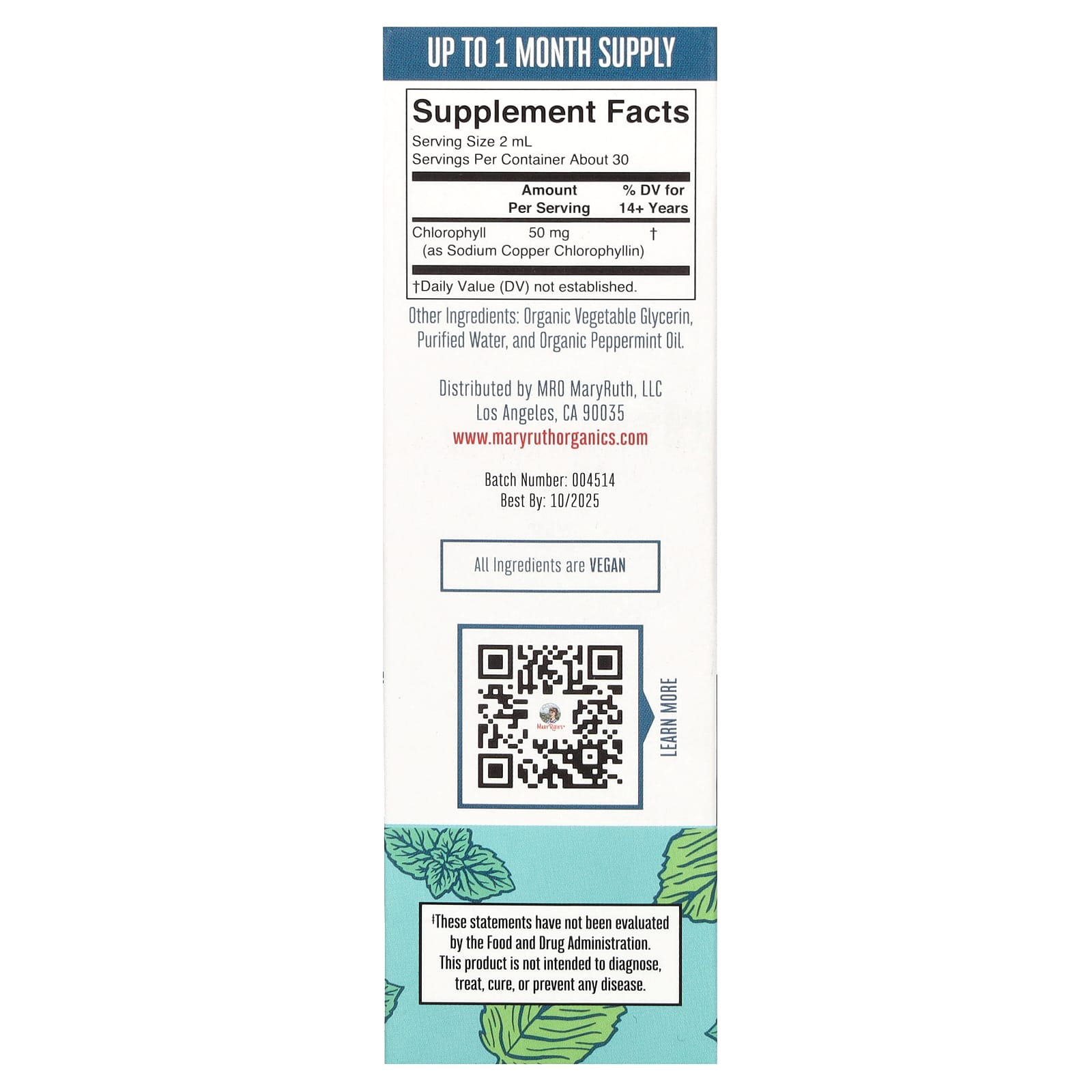 MaryRuths Gotas Líquidas de Clorofila Vegana Hortelã-pimenta 50 mg 60 ml (2 fl oz) – MaryRuth’s Suplementos Superalimentos Clorofila Bebês e Crianças Saúde Infantil Verduras e superalimentos para crianças.