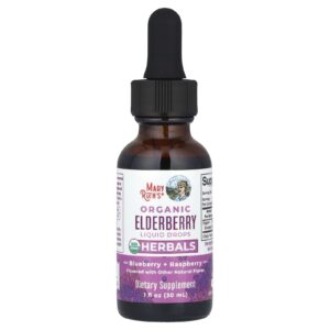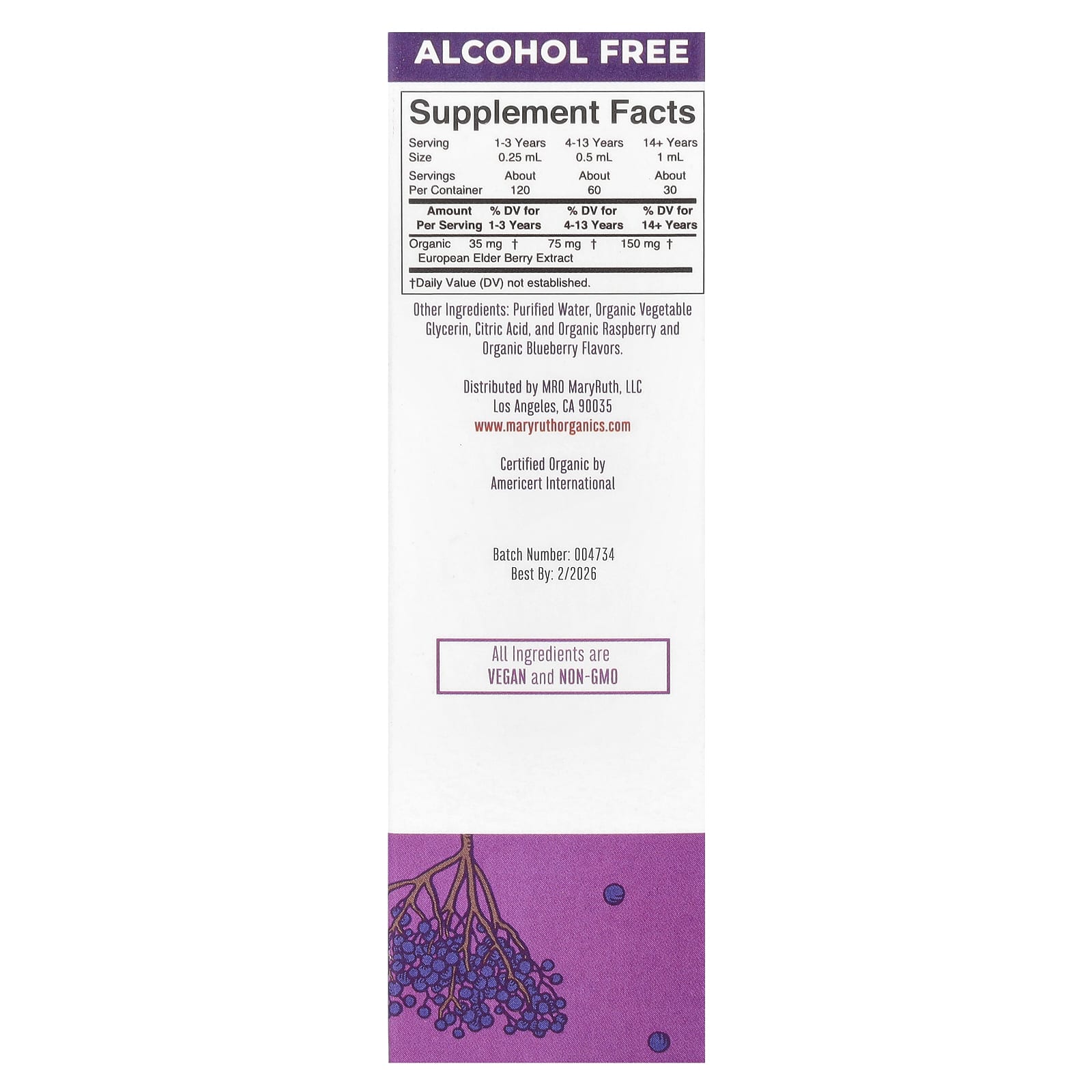 MaryRuths Gotas Líquidas de Sabugueiro Orgânico Sem Álcool Mirtilo + Framboesa 30 ml (1 fl oz) – MaryRuth’s Suplementos Ervas Sabugueiro – Sambucus Bebês e Crianças Saúde Infantil Verduras e superalimentos para crianças.