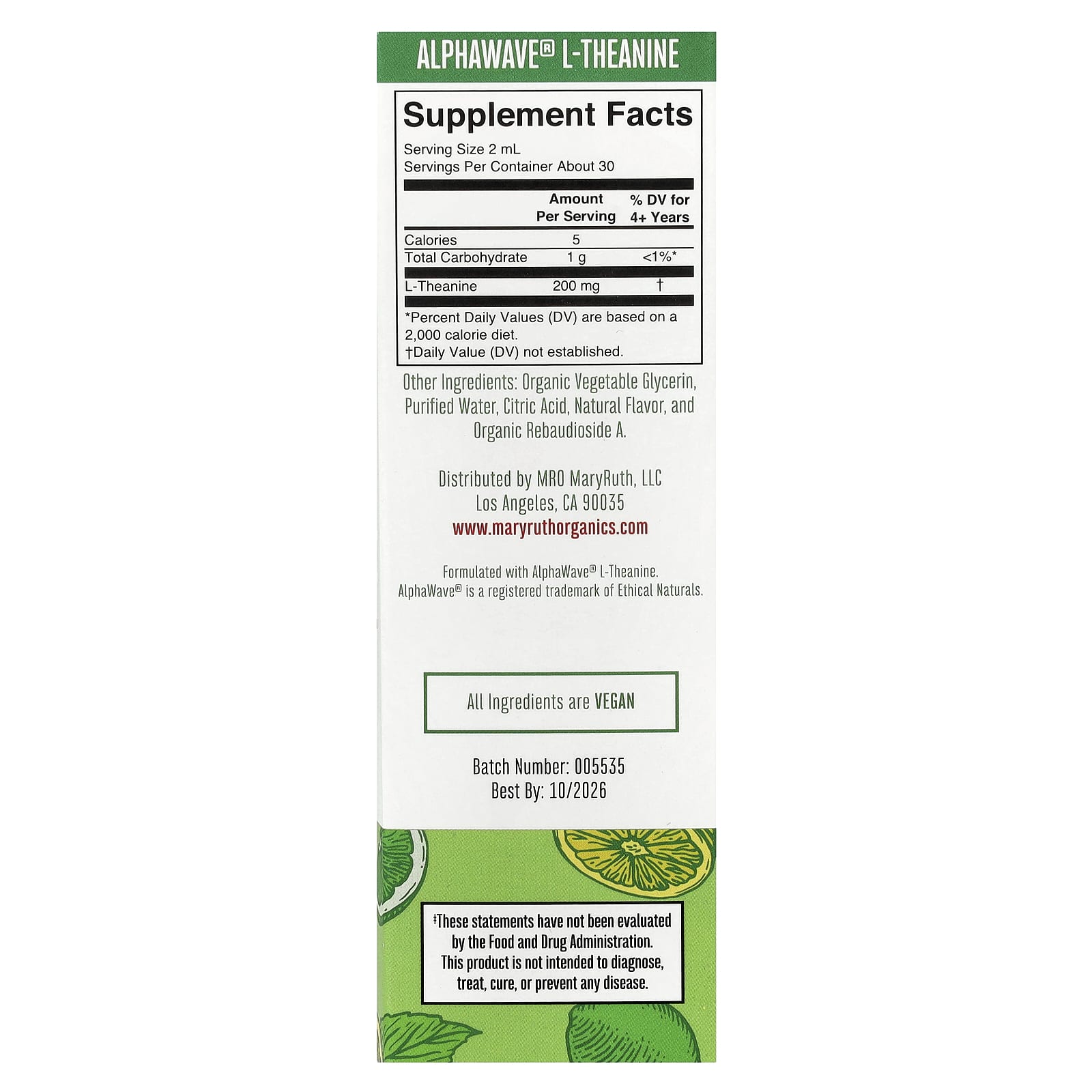 MaryRuths L-Theanine Liquid Drops Limão Siciliano e Lima 60 ml (2 fl oz) – MaryRuth’s Suplementos Aminoácidos L-Teanina Bebês e Crianças Saúde Infantil Suporte para o Cérebro e Cognição Infantil.