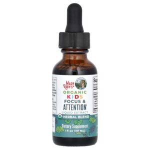 MaryRuths Organic Kids Extrato Líquido para Foco e Atenção Sem Álcool 1.180 mg 30 ml (1 fl oz) – MaryRuth’s Bebês e Crianças Saúde Infantil Ervas Infantis Suporte para o Cérebro e Cognição Infantil.