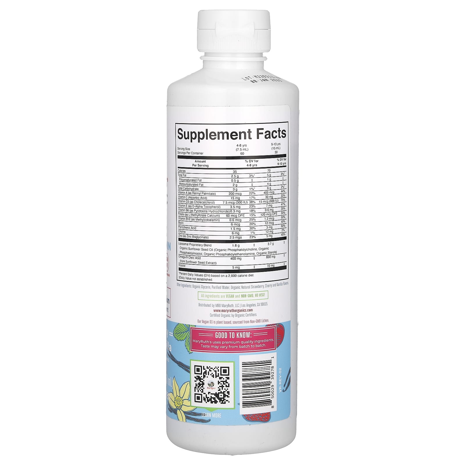 MaryRuths Organic Kids Multivitamínico Lipossomal 4–13 Anos Morango Cereja e Baunilha 450 ml (1522 fl oz) – MaryRuth’s Bebês e Crianças Saúde Infantil Vitaminas para Crianças Multivitamínicos Infantis.