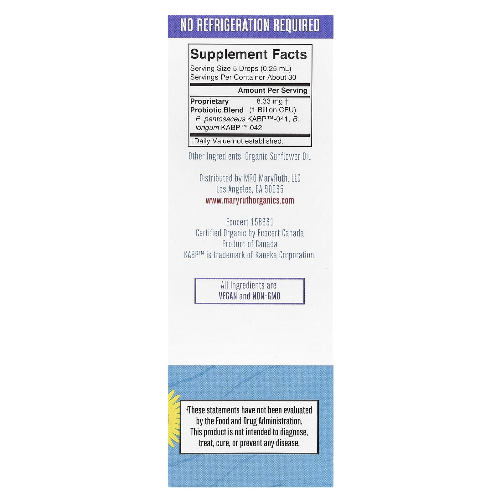 MaryRuths Probiótico de Precisão Infantil Orgânico Gotas Líquidas Recém-nascidos Sem Sabor 1 Bilhão de UFCs 8 ml (027 fl oz) – MaryRuth’s Suplementos Saúde Intestinal Probióticos Bebês e Crianças Saúde Infantil Auxílio digestivo para crianças.