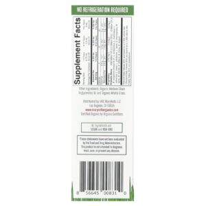 Óleo de triglicerídeos de cadeia média orgânicos e grama de alfafa orgânica.