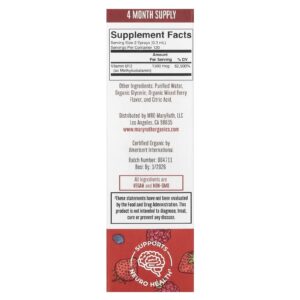 MaryRuths Spray Líquido de Methyl B12 Orgânico Fruto Silvestre 1.500 mcg 30 ml (1 fl oz) – MaryRuth’s Suplementos Vitaminas Vitamina B Vitamina B12 (Cobalamina).