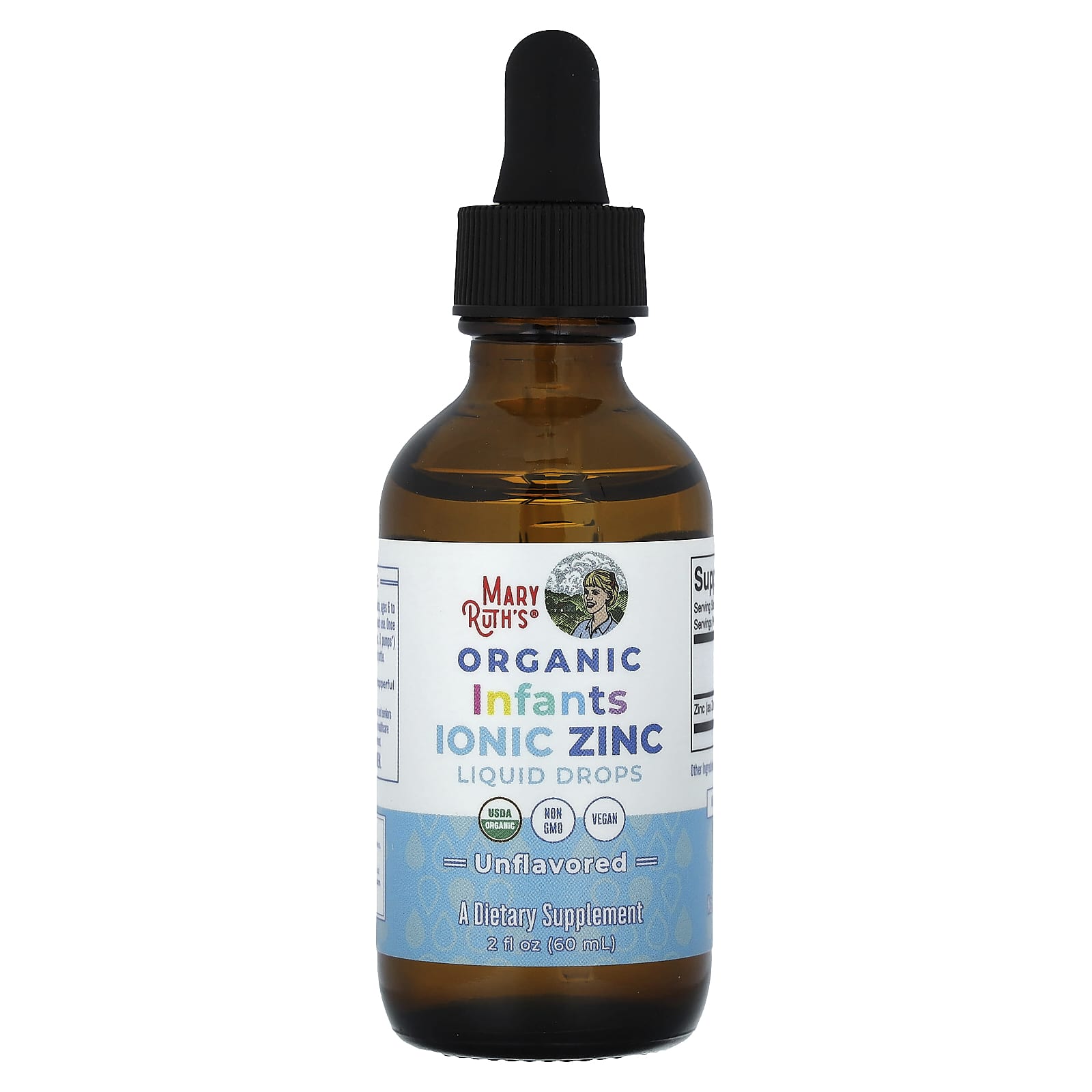 MaryRuths Zinco Iônico Orgânico para Bebês Gotas Líquidas 6 a 12 Meses Sem Sabor 60 ml (2 fl oz)