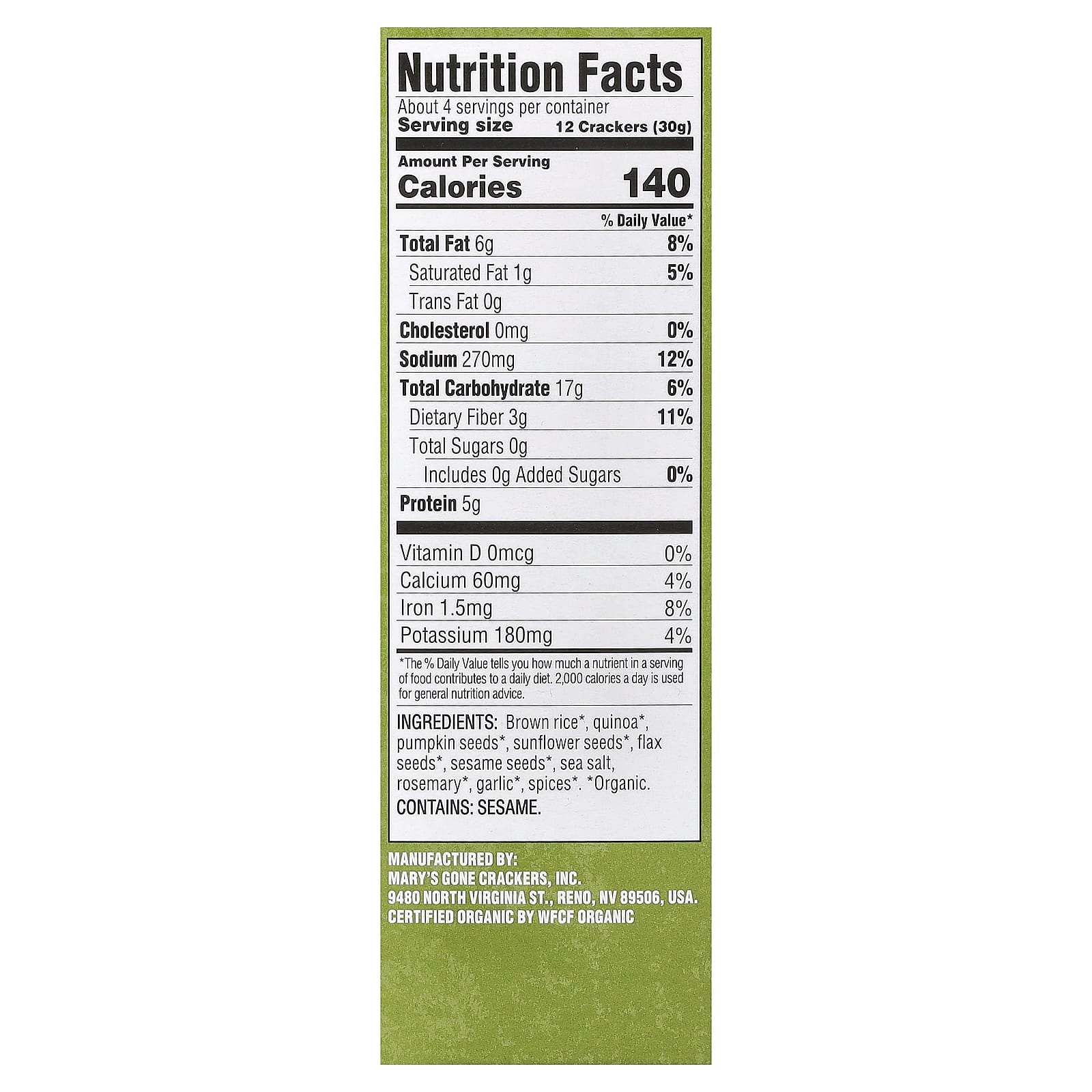 Marys Gone Crackers Biscoitos com Supersementes Orgânicas Alecrim 113 g (4 oz) – Mary’s Gone Crackers Alimentos Petiscos e lanches Biscoitos salgados.