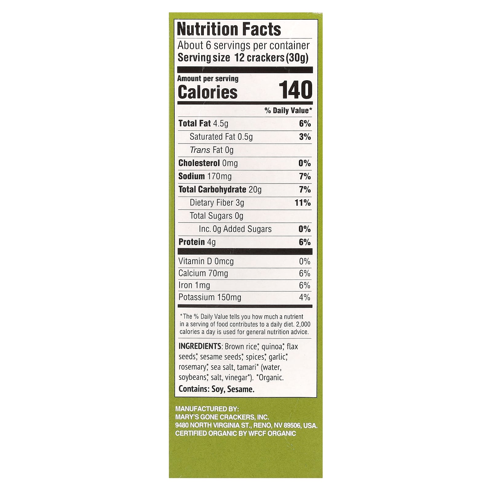 Marys Gone Crackers Biscoitos de Ervas Orgânicas 184 g (65 oz) – Mary’s Gone Crackers Alimentos Petiscos e lanches Biscoitos salgados.