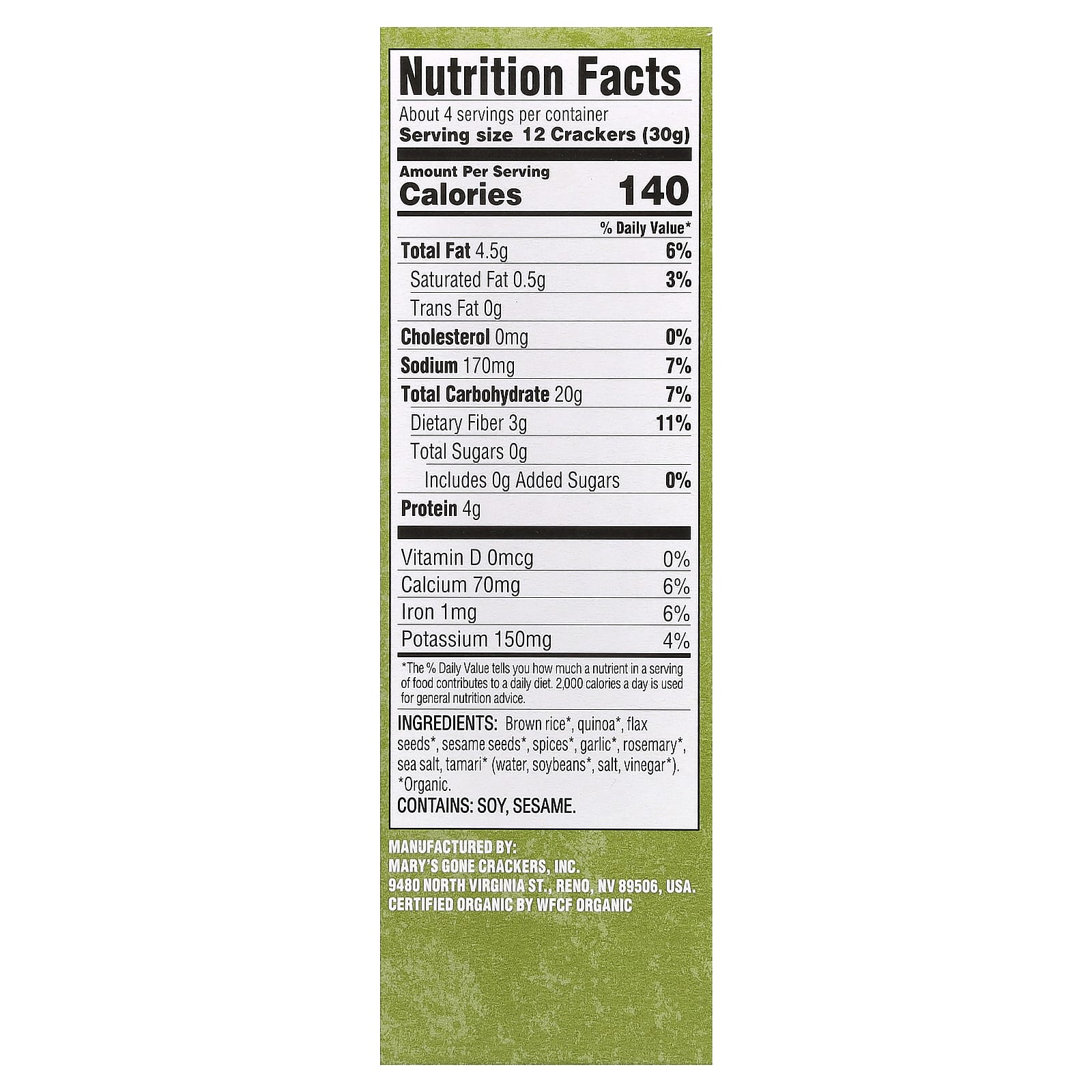Marys Gone Crackers Biscoitos Originais de Ervas Orgânicas 113 g (4 oz) – Mary’s Gone Crackers Alimentos Petiscos e lanches Biscoitos salgados.