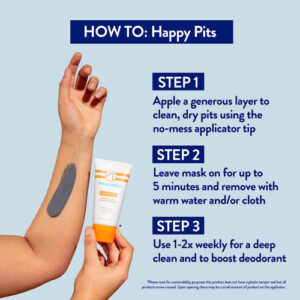 WEEKLY PIT DETOX – Use 1 a 2 vezes por semana para eliminar odores, bactérias e resíduos persistentes. A pele das axilas fica macia, suave e sem odores!