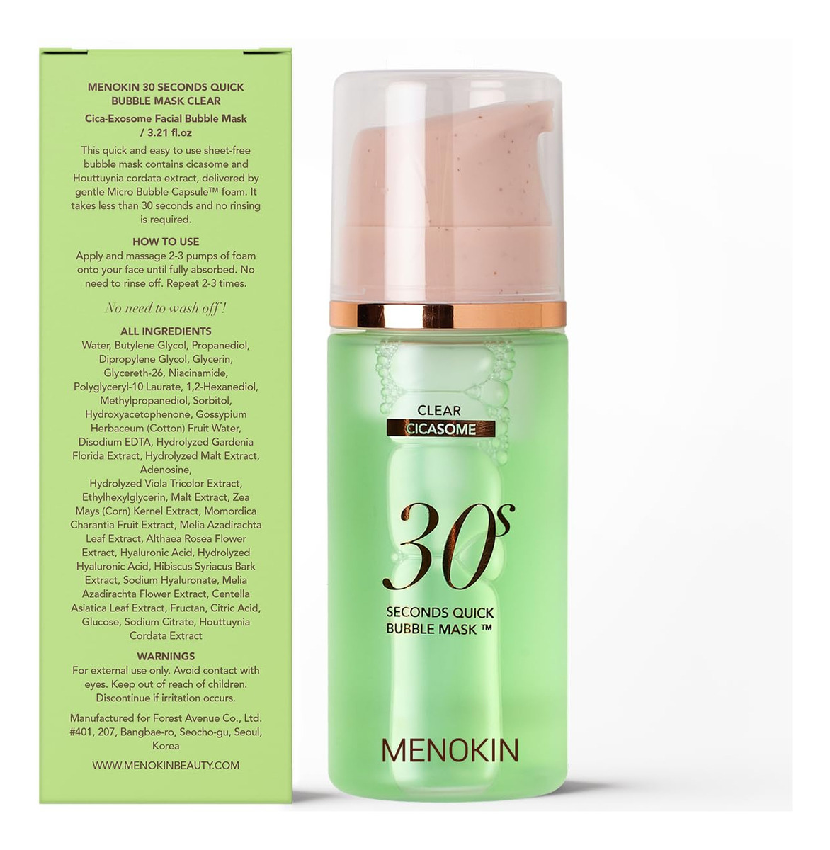 Máscara facial nº 1: milagre de 30 segundos para uma máscara de lençol de 20 minutos que brilha! Troque folhas por Micro Bubble Capsulesdirect essence dive, sem esperar! Patenteado! Fácil de aplicar e absorver, pacote de máscaras sem lençóis Ingredientes sem fragrância e antialérgicos, beleza limpa, grau verde EWG — Cuidados com a pele mínimos que economizam tempo, Menokin: obtenha um brilho de máscara de 20 minutos em 30 segundos! – Uso adequado: após a limpeza, bombeie a máscara de bolhas 2 a 3 vezes e aplique no rosto, massageando suavemente até que as bolhas sejam absorvidas. Não há necessidade de lavar com água. Aplique a bolha e massageie. – Cuidados com a pigmentação: usa a tecnologia cica-exsome para uma absorção mais profunda da centela, melhorando a reparação da pele. Melhorando a pigmentação após apenas um uso, ilumina e uniformiza o tom da pele. – Patenteado! Máscara Quick Bubble de 30 segundos: a essência penetra diretamente com a tecnologia Micro Bubble Capsule. Bolha de colágeno não oleosa e não pegajosa. – Um frasco contém o equivalente a 70 máscaras de folha. (*Pode variar dependendo do uso. Com base em 2-3 bombas.)