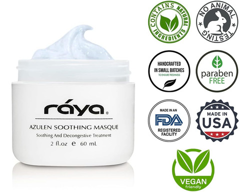 PRODUTO: Máscara Calmante Raya Azulen (602) | Máscara de Tratamento Facial Calmante para Pele Sensível | Tonifica e refina a tez | Feito com Azuleno e Aloe Vera
